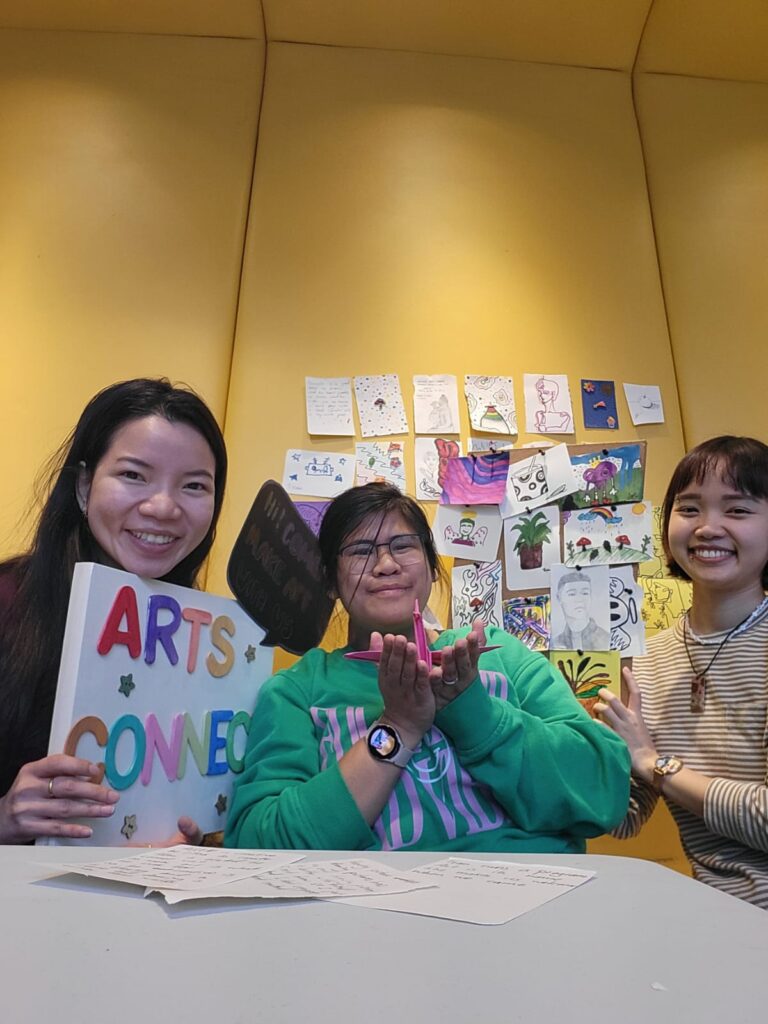 Arts Connect was made possible through the contributions of students in the Arts Education and Community Engagement program (2023–2024), with special acknowledgement to Gabby and Tran, whose leadership was integral to the development and delivery of the initiative.