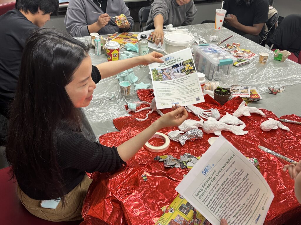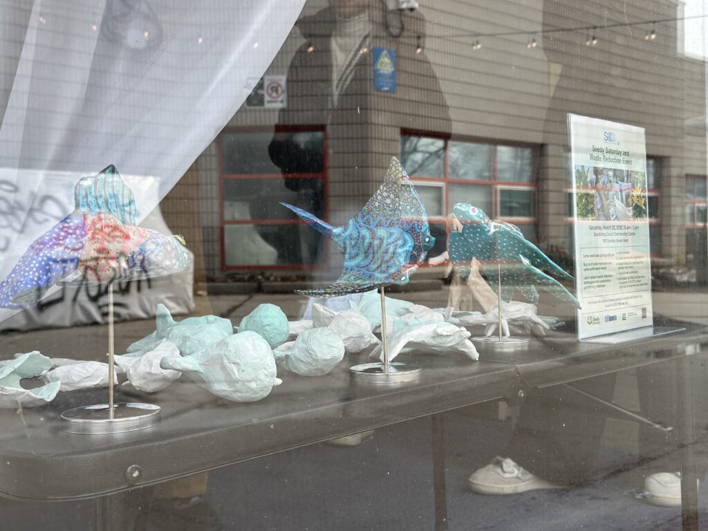 Instead of offering just a finished artwork, I built a platform for engagement. Eleven high school students, representing diverse Asian heritages, came together to construct 100 papier-mâché aquatic sculptures from wasted materials collected through the community centre. The process became an exercise in mentorship and reciprocal learning: these young artists were not simply assisting a project, they were shaping it.